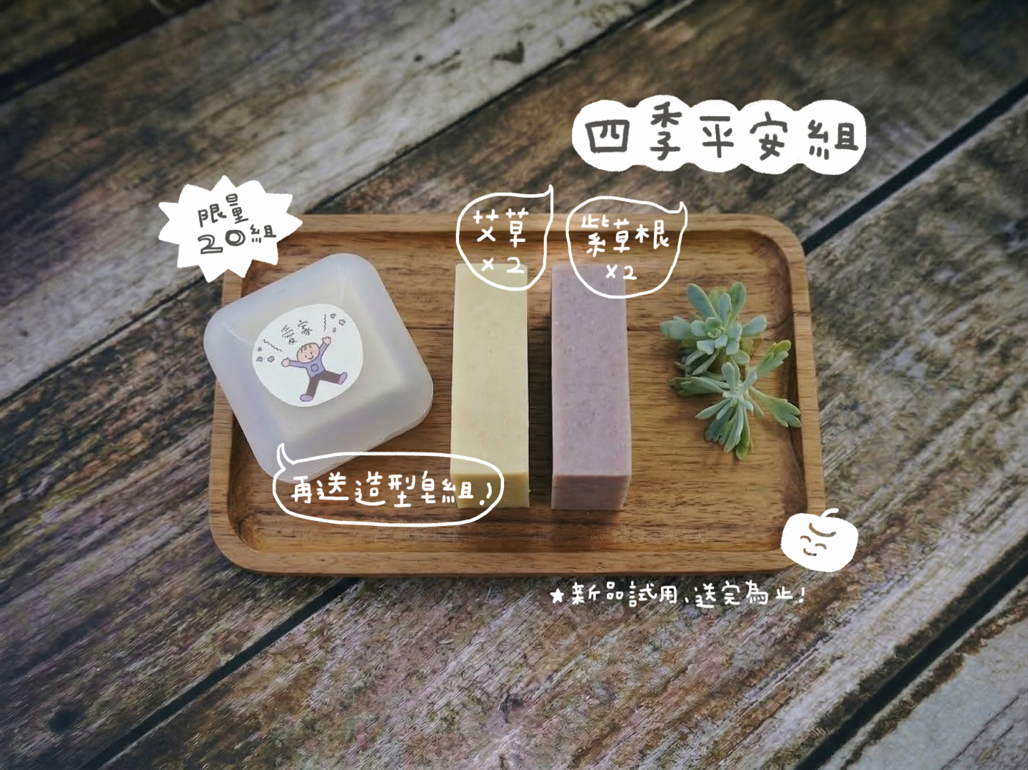 經典>四季平安組 $588(艾草手工皂*2+紫草根手工皂*2+贈愛家造型皂組*1)
