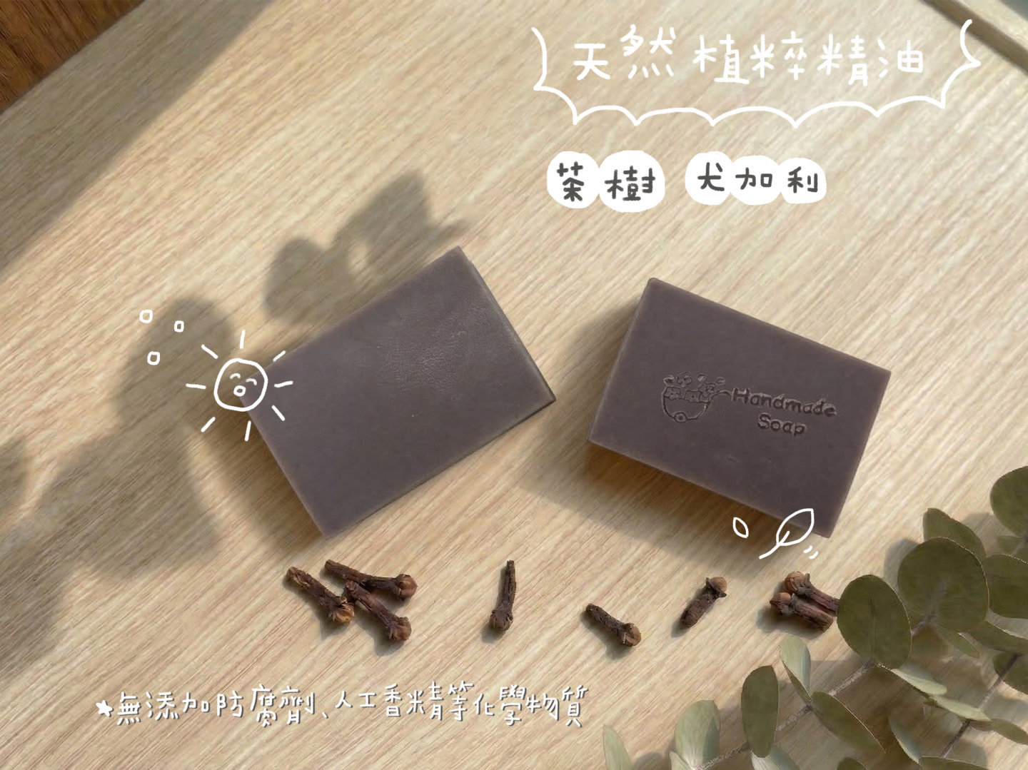 注意事項:本產品為純手工製造,故色澤、外觀略有差異,但不影響手工皂品質,請安心使用。